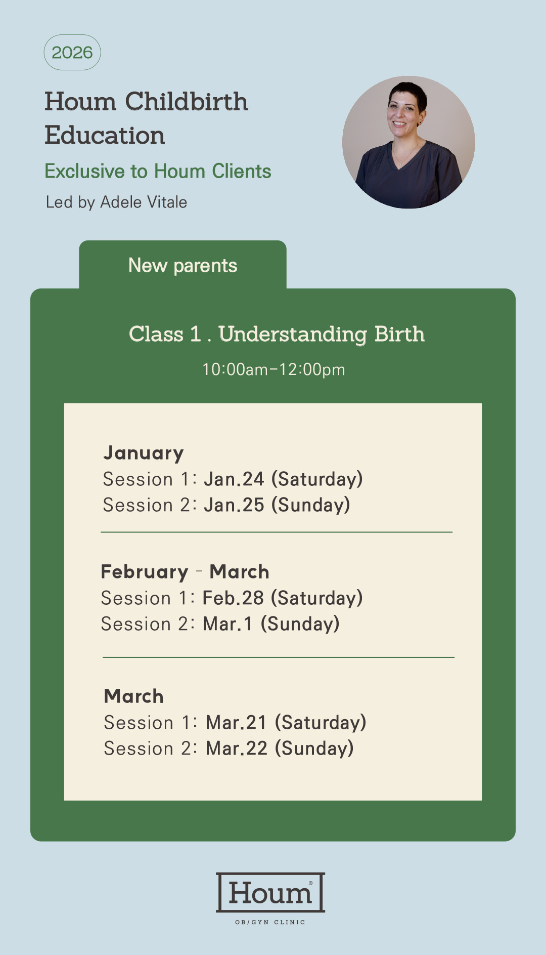 If you are a first-time parent registered to give birth at Houm, you are invited to join our childbirth classes!